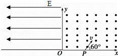 一个质量为m电荷量为q的带电粒子从x轴上的P(a,0)点以速度v沿与x正方向成60°的方向射入第一象限内的匀强磁场中,并恰好垂直于y轴射出第一象限,进入第二象限的匀强电场中,电场强度为E.不计粒子重力,求: