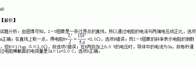 C.因I-U图象的斜率表示电阻的倒数,故R=1/tan α=1.0 Ω