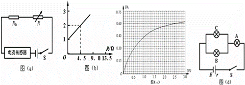 (2)现有三个标有“2.5V,0.6A”相同规格的小灯泡,其I﹣U特性曲线如图(c)所示,将它们与图(a)中电源按图(d)所示电路相连,A灯恰好正常发光,则电源内阻r= Ω,图(a)中定值电阻R0= Ω