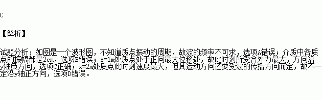 D.x=2m处质点此时刻速度最大,方向沿y轴正方向