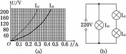 额定电压均为220 V的白炽灯L1和L2的U-I特性曲线如图6(a)所示,现将和L2完全相同的L3与L1和L2一起按如图(b)所示电路接入220 V电路中,则下列说法正确的是( )