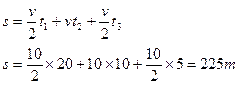 Æû³µÏÈÒÔa1£½0.5 m/s2µÄ¼ÓËÙ¶ÈÓɾ²Ö¹¿ªÊ¼×öÔȼÓËÙÖ±ÏßÔ˶¯£¬ÔÚ20 sÄ©¸Ä×öÔÈËÙÖ±ÏßÔ˶¯£¬µ±ÔÈËÙÔ˶¯³ÖÐø10 sºó£¬ÒòÓöµ½ÕϰÆû³µ±ã½ô¼±É²³µ£¬ÒÑ֪ɲ³µµÄ¼ÓËÙ¶ÈΪa2£½£2 m/s2£¬Çó£º