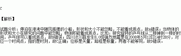 A.研究停泊在港湾中随风摇摆的小船状态时的小船能被视为质点