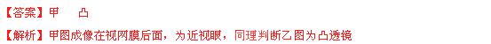在下左图中,____________图(填“甲”或“乙”)表示远视眼成像示意图。矫正远视眼应佩戴眼镜的镜片是___________透镜(填“凸”或“凹”)。