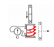 为判断线圈绕向,可将灵敏电流计G与线圈L连接,如图所示.己知线圈由a端开始绕至b端:当电流从电流计G左端流入时,指针向左偏转.将磁铁N极向下从线圈上方竖直插入L时,发现指针向左偏转.