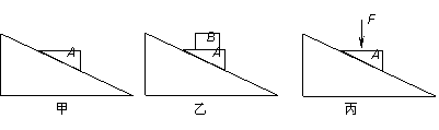 将一斜面固定在水平地面上,在斜面上放一小滑块A,如图甲。在小滑块A上放一小物体B ,物体B始终与A保持相对静止如图乙;或在小滑块A上施加一竖直向下的作用力F,如图丙。则下列说法正确的是
