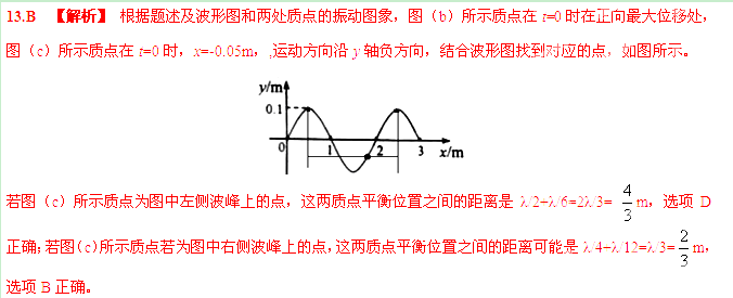 一列简谐横波沿x轴正方向传播,图(a)是t=0时刻的波形图,图(b)和图(c)分别是x轴上某两处质点的振动图像。由此可知,这两质点平衡位置之间的距离可能是