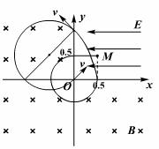 ÈçͼËùʾ£¬ÔÚÖ±½Ç×ø±êϵµÄµÚIÏóÏÞ·Ö²¼×ų¡Ç¿E=5¡Á103V/m£¬·½ÏòˮƽÏò×óµÄÔÈÇ¿µç³¡£¬ÆäÓàÈýÏóÏÞ·Ö²¼×Å´¹Ö±Ö½ÃæÏòÀïµÄÔÈÇ¿´Å³¡¡£Ïִӵ糡ÖÐM£¨0.5£¬0.5£©µãÓɾ²Ö¹ÊÍ·ÅÒ»±ÈºÉΪq/m=2¡Á104C/kg¡¢²»¼ÆÖØÁ¦µÄ´øÕýµç΢Á££¬¸Ã΢Á£µÚÒ»´Î½øÈë´Å³¡ºó½«´¹Ö±Í¨¹ýxÖá¡£