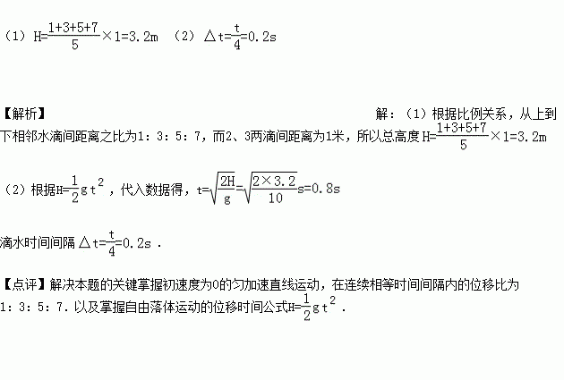 (2)滴水的时间间隔是多少?(g取10m/s2)