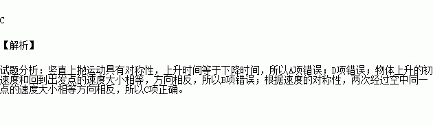 关于竖直上抛运动的上升过程和下落过程(起点和终点相同),下列说法正确的是:( )