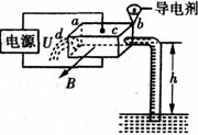 电磁泵在目前的生产、科技中得到了广泛应用。如图所示,泵体是一个长方体,ab边长为L1,两侧端面是边长为L2的正方形;流经泵体内的液体密度为ρ、在泵头通入导电剂后液体的电导率为σ(电阻率的倒数),泵体所在处有方向垂直向外的磁场B,把泵体的上下两表面接在电压为U(内阻不计)的电源上,则( )