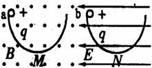 ÈçͼËùʾ£¬Á½¸ö°ë¾¶ÏàͬµÄ°ëÔ²Ðι⻬¹ìµÀÖÃÓÚÊúÖ±Æ½ÃæÄÚ£¬×óÓÒÁ½¶ËµÈ¸ß£¬·Ö±ð´¦ÓÚÑØË®Æ½·½ÏòµÄÔÈÇ¿´Å³¡ºÍÔÈÇ¿µç³¡ÖС£Á½¸öÏàͬµÄ´øÕýµçСÇòa¡¢b ͬʱ´ÓÁ½¹ìµÀ×ó¶Ë×î¸ßµãÓɾ²Ö¹ÊÍ·Å£¬M¡¢NΪ¹ìµÀ×îµÍµã£¬ÔòÏÂÁÐ˵·¨ÖÐÕýÈ·µÄÊÇ