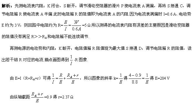 )、单刀双掷开关、单刀单掷开关各一个及导线若干。考虑到干电池的内阻较小,电流表的内阻不能忽略。
