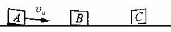 如图,三个质量相同的滑块A、B、C,间隔相等地静置于同一水平轨道上。现给滑块A向右的初速度v0,一段时间后A与B发生碰撞,碰后AB分别以