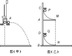 £¨2£©ËûÓÃͼ£¨ÒÒ£©ËùʾװÖÃ×öʵÑ飬Á½¸öÏàͬµÄ»¡ÐιìµÀM¡¢N£¬·Ö±ðÓÃÓÚ·¢ÉäСÌúÇòP¡¢Q£¬ÆäÖÐMµÄÄ©¶ËÊÇˮƽµÄ£¬NµÄÄ©¶ËÓë¹â»¬µÄˮƽ°åÏàÇУ»Á½¹ìµÀÉ϶˷ֱð×°Óеç´ÅÌúC¡¢D£¬µ÷½Úµç´ÅÌúC¡¢DµÄ¸ß¶È£¬Ê¹AC=BD£¬´Ó¶ø±£Ö¤Ð¡ÇòP¡¢QÔÚ¹ìµÀ³ö¿Ú´¦µÄˮƽ³õËÙ¶Èv0ÏàµÈ¡£ÏÖ½«Ð¡ÇòP¡¢Q·Ö±ðÎüÔÚµç´ÅÌúC¡¢DÉÏ£¬È»ºóÇжϵçÔ´£¬Ê¹Á½Ð¡ÇòÄÜÒÔÏàͬµÄ³õËÙ¶Èv0ͬʱ·Ö±ð´Ó¹ìµÀM¡¢NµÄ϶ËÉä³ö¡£ÊµÑé¿É¹Û²ìµ½µÄÏÖÏóÓ¦¸ÃÊÇ ¡£