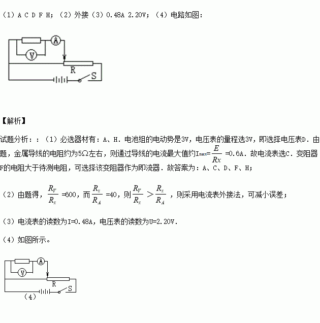 欲用伏安法测定一段阻值约为5Ω的金属导线的电阻,要求测量结果尽量准确,现备有以下器材: