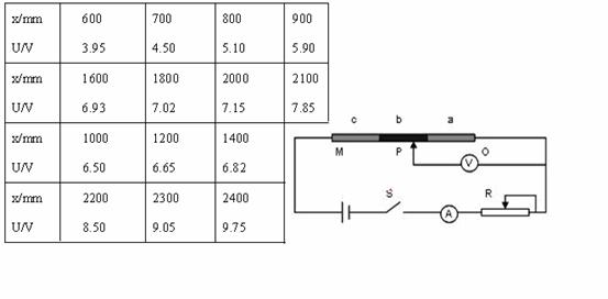 (1)在答卷上绘出电压表读数U随OP间距离x变化的图线;![]()