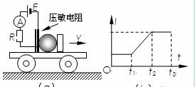 压敏电阻的阻值随所受压力的增大而减小,有位同学利用压敏电阻设计了判断小车运动状态的装置,其工作原理如图(a)所示,将压敏电阻和一块挡板固定在绝缘小车上,中间放置一个绝缘重球。小车向右做直线运动过程中,电流表示数如图(b)所示,下列判断正确的是( )