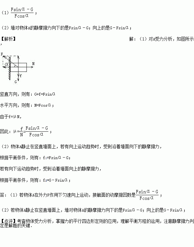 (1)若物体A在外力F作用下匀速向上运动,求接触面的动摩擦因数是多少?