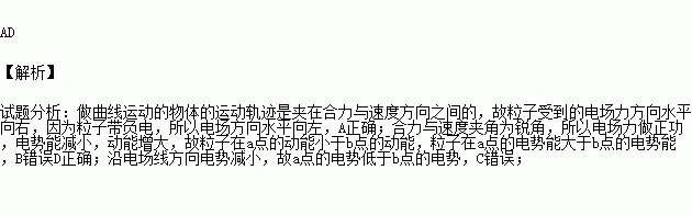如图所示为一匀强电场,实线为电场线,一个带负电的粒子射入该电场后,轨迹如图中虚线所示,运动方向从a到b,则可以判断的是
