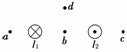 如图4,两根相互平行的长直导线分别通有方向相反的电流I1和I2且I1>I2;a、b、c、d为导线某一横截面所在平面内的四点,且a、b、c与两导线共面;b点在两导线之间,b、d的连线与导线所在平面垂直。磁感应强度可能为零的点是( )