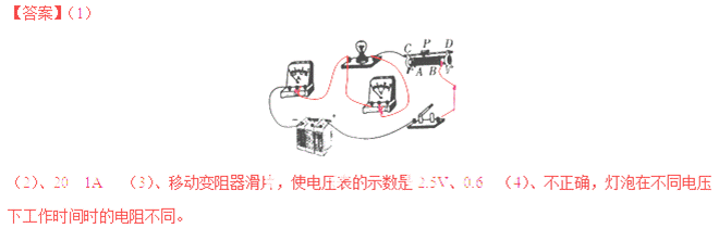 (2)实验时,电源电压为6V,小灯泡的电阻大约为10Ω.滑动变阻器有“10( 2A”和“20( 1A”两种供你选择,应该选择_______的滑动变阻器.