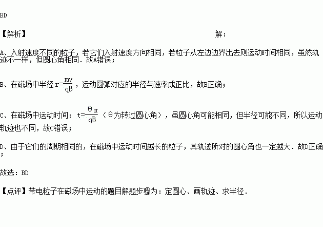 D£®Ôڴų¡ÖÐÔ˶¯Ê±¼äÔ½³¤µÄÁ£×Ó£¬Æä¹ì¼£Ëù¶ÔµÄÔ²ÐĽÇÒ»¶¨Ô½´ó