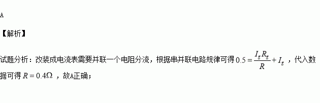 一电流表的满偏电流Ig=1mA,内阻为200Ω。要把它改装成一个量程为0.5A的电流表,则应在电流表上( )