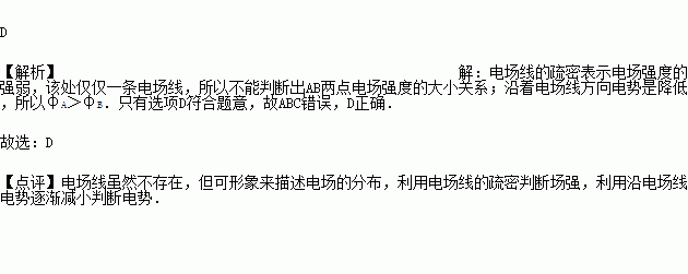 如图所示为电场中的一条电场线,A、B为其上的两点,EA、EB分别为这两点的电场强度,φA、φB分别为这两点的电势.下列说法正确的是( )