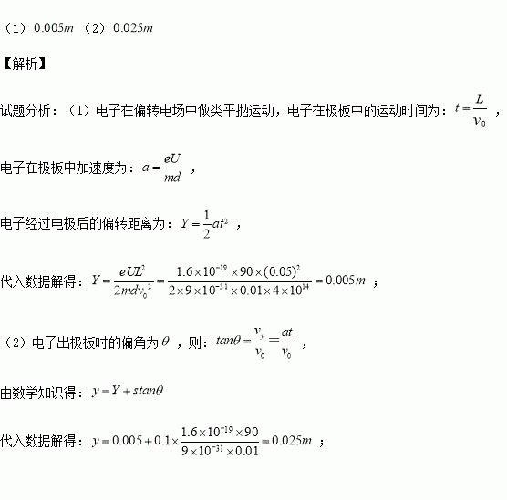 £¨1£©µç×Ó¾¹ýƫתµç³¡ºóµÄÆ«ÒÆY£¬