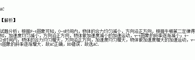 静止在光滑水平面上的物体,同时受到在同一直线上的力F1、F2作用,F1、F2随时间变化的图象如图所示,图乙中的运动图像与此相符的可能是( )