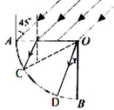 的玻璃柱体,其横截面是圆心角为90°、半径为R的扇形OAB,一束平行光平行于横截面,以45°入射角照射到OA上,OB不透光,若只考虑首次入射到圆弧AB上的光,求: