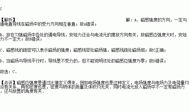 C.磁感线密处磁场强,磁感线疏处磁场弱