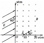 在如图所示的空间区域里,y轴左方有一匀强电场,场强方向跟y轴正方向成60°,大小为E=4.0×105N/C;y轴右方有一垂直纸面向里的匀强磁场,磁感应强度B=0.20T.有一质子以速度v=2.0×106m/s,由x轴上的A点(10cm,0)沿与x轴正方向成30°斜向上射入磁场,在磁场中运动一段时间后射入电场,后又回到磁场,经磁场作用后又射入电场.已知质子质量近似为m=1.6×10﹣27kg,电荷q=1.6×10﹣19C,质子重力不计.求: