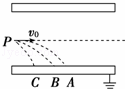将三个质量相等的带电微粒分别以相同的水平速度由P点射入水平放置的平行金属板间,已知上板带正电,下板接地.三个微粒分别落在图中A、B、C三点,不计其重力作用,则( )