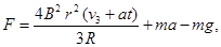 如图所示,竖直平面内有一半径为r、电阻为R1、粗细均匀的光滑半圆形金属环,在M、N处与相距为2r、电阻不计的平行光滑金属轨道ME、NF相接,EF之间接有电阻R2,已知R1=12R,R2=4R。 在MN上方及CD下方有水平方向的匀强磁场I和Ⅱ,磁感应强度大小均为B。现有质量为m、电阻不计的导体棒ab,从半圆环的最高点A处由静止下落,在下落 过程中导体棒始终保持水平,与半圆形金属环及轨道接触良好,设平行轨道足够长。已知导体棒ab下落r/2时的速度大小为v1,下落到MN处的速度大小为v2。![]()