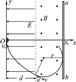 (2)当感光板沿x轴方向移到某一位置时恰好没有电子打到板上,求板ab到y轴的距离