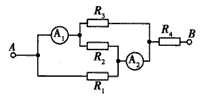 如图所示电路,R1=R2=4 Ω,R3=R4=2 Ω,UAB=6 V,求:
