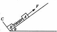ÈçͼËùʾ£¬ÔÚÇã½ÇΪ¦È=30¡ãµÄ¹â»¬Ð±ÃæÉÏÓÐÁ½¸öÓÃÇáÖʵ¯»ÉÏàÁ¬½ÓµÄÎï¿éA¡¢B£¬ËüÃǵÄÖÊÁ¿¾ùΪΪm£¬µ¯»ÉµÄ¾¢¶ÈϵÊýΪk£¬CΪһ¹Ì¶¨µ²°å£¬ÏµÍ³´¦ÓÚ¾²Ö¹×´Ì¬¡£ÏÖ¿ªÊ¼ÓÃÒ»ÑØÐ±Ãæ·½ÏòµÄÁ¦FÀÎï¿éAʹ֮ÏòÉÏÔȼÓËÙÔ˶¯£¬µ±Îï¿éB¸ÕÒªÀ뿪C ʱFµÄ´óСǡΪ2mg¡£Çó£º