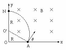 方向飞离磁场,N点到O点的距离为l,已知OA间距离为
