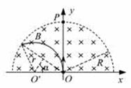如图所示,在以坐标原点O为圆心、半径为R的半圆形区域内,有相互垂直的匀强电场和匀强磁场,磁感应强度为B,磁场方向垂直于xOy平面向里。一带正电的粒子(不计重力)从O点沿y轴正方向以某一速度射人,带电粒子恰好做匀速直线运动,经