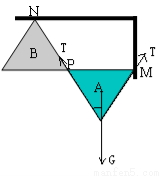 A、B为相同大小的两个正三角形板块,如图所示铰接于M、 N、P三处并静止。M、N分别在竖直墙壁上和水平天花板上,A板较厚,质量分布均匀,重力为G。B板较薄,重力不计。B的下底边与A的上底边均水平。那么,A板对铰链P的作用力的方向为__________;作用力的大小为__________。