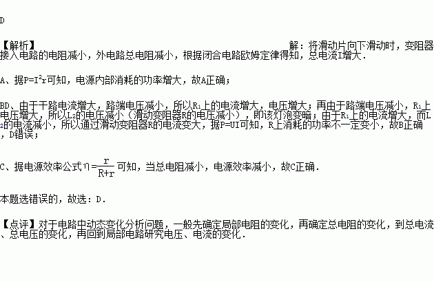 如图所示电路中,R为一滑动变阻器,P为滑片,若将滑片向下滑动,则在滑动过程中,下列判断错误的是( )