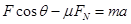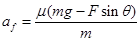 如图示,质量为m的物体,在与水平方向成θ角的拉力F作用下,在水平面上做加速度为a的匀加速运动。已知物体与水平面间有弹力作用且动摩擦因数为μ,则物体所受的各力产生的加速度的大小,下面说法正确的是 ( )![]()