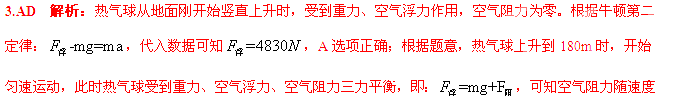 ÈçͼËùʾ£¬×ÜÖÊÁ¿Îª460kgµÄÈÈÆøÇò£¬´ÓµØÃæ¸Õ¿ªÊ¼ÊúÖ±ÉÏÉýʱµÄ¼ÓËÙ¶ÈΪ0.5m/s2£¬µ±ÈÈÆøÇòÉÏÉýµ½180mʱ£¬ÒÔ5m/sµÄËÙ¶ÈÏòÉÏÔÈËÙÔ˶¯¡£ÈôÀ뿪µØÃæºóÈÈÆøÇòËùÊܸ¡Á¦±£³Ö²»±ä£¬ÉÏÉý¹ý³ÌÖÐÈÈÆøÇò×ÜÖÊÁ¿²»±ä£¬ÖØÁ¦¼ÓËÙ¶Èg=10m/s2 ¡£¹ØÓÚÈÈÆøÇò£¬ÏÂÁÐ˵·¨ÕýÈ·µÄÊÇ£¨ £©
