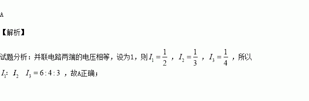 有三个电阻,R1=2Ω,R2=3Ω,R3=4Ω,现把它们并联起来接入电路,则通过它们的电流之比为I1:I2:I3是( )