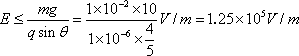 ,求此匀强电场场强E的取值范围。(g=10m/s2)![]()
