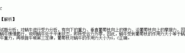 如图所示,一只蜗牛沿着葡萄枝缓慢爬行,若葡萄枝的倾角为α,则葡萄枝对重为G的蜗牛的作用力为
