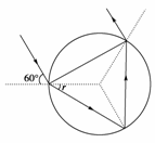 如图,一束单色光射入一玻璃球体,入射角为60°,已知光线在玻璃球内经一次反射后,再次折射回到空气中时与入射光线平行,此玻璃的折射率为( )
