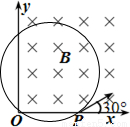 ÓÉͼ¿ÉÖª£¬Á£×ÓÓÉPµã³É30¡ã½ÇÈëÉ䣬ÔòÔ²ÐÄÔÚ¹ýPµãÓëËÙ¶È·½Ïò´¹Ö±µÄ·½ÏòÉÏ£¬ÈçͼËùʾ£¬Á£×ÓÔڴų¡ÖÐÒªÏëµ½´ïOµã£¬×ª¹ýµÄÔ²ÐĽǿ϶¨´óÓÚ180¡ã£¬¶øÒò´Å³¡ÎªÓн磬¹ÊÁ£×Ó²»¿ÉÄÜͨ¹ý×ø±êԵ㣬¹ÊC´íÎó£¬DÕýÈ·£»¹ÊÑ¡AD.